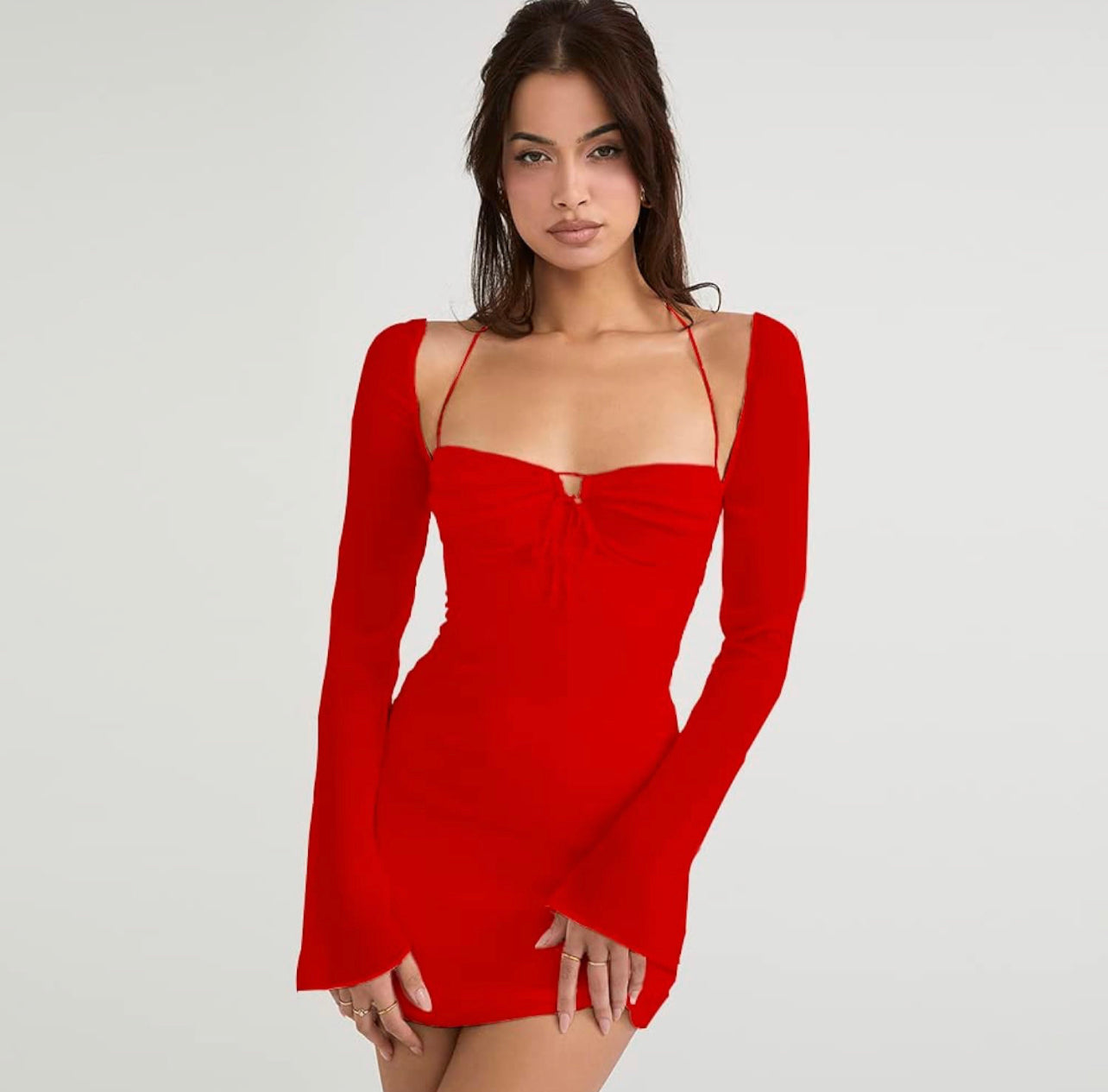 A elastic fabric that hugs your figure perfectly and a bodycon cut with a sweetheart neckline